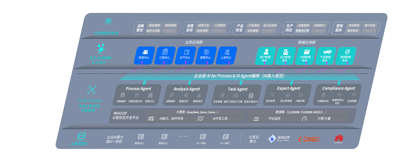 端到端的一站式AI工作空间深度融合了从企业战略规划到日常经营的全流程业务板块,,,,定向解决车企内部领域多、、部门多、、链条长、、场景碎片化等难题,,,,支持车企快速构建以AI为核心的生产力写作体系,,,,实现任务执行与AI能力的无缝集成与交互